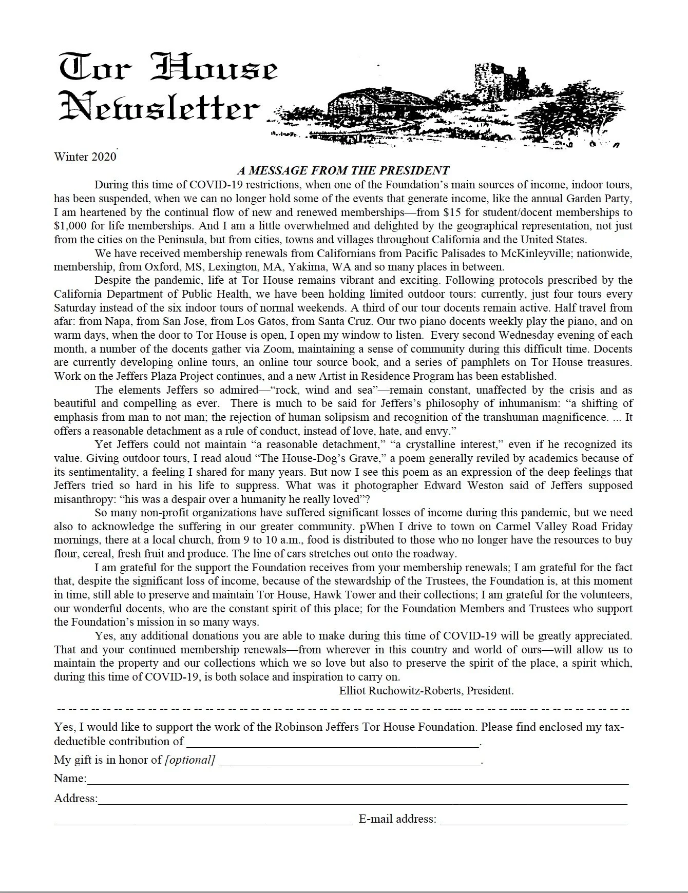 Tor House Foundation Newsletter Winter 2020 Dec 11 Written By Click here or on image below to download the PDF of the Winter 2020 newsletter.