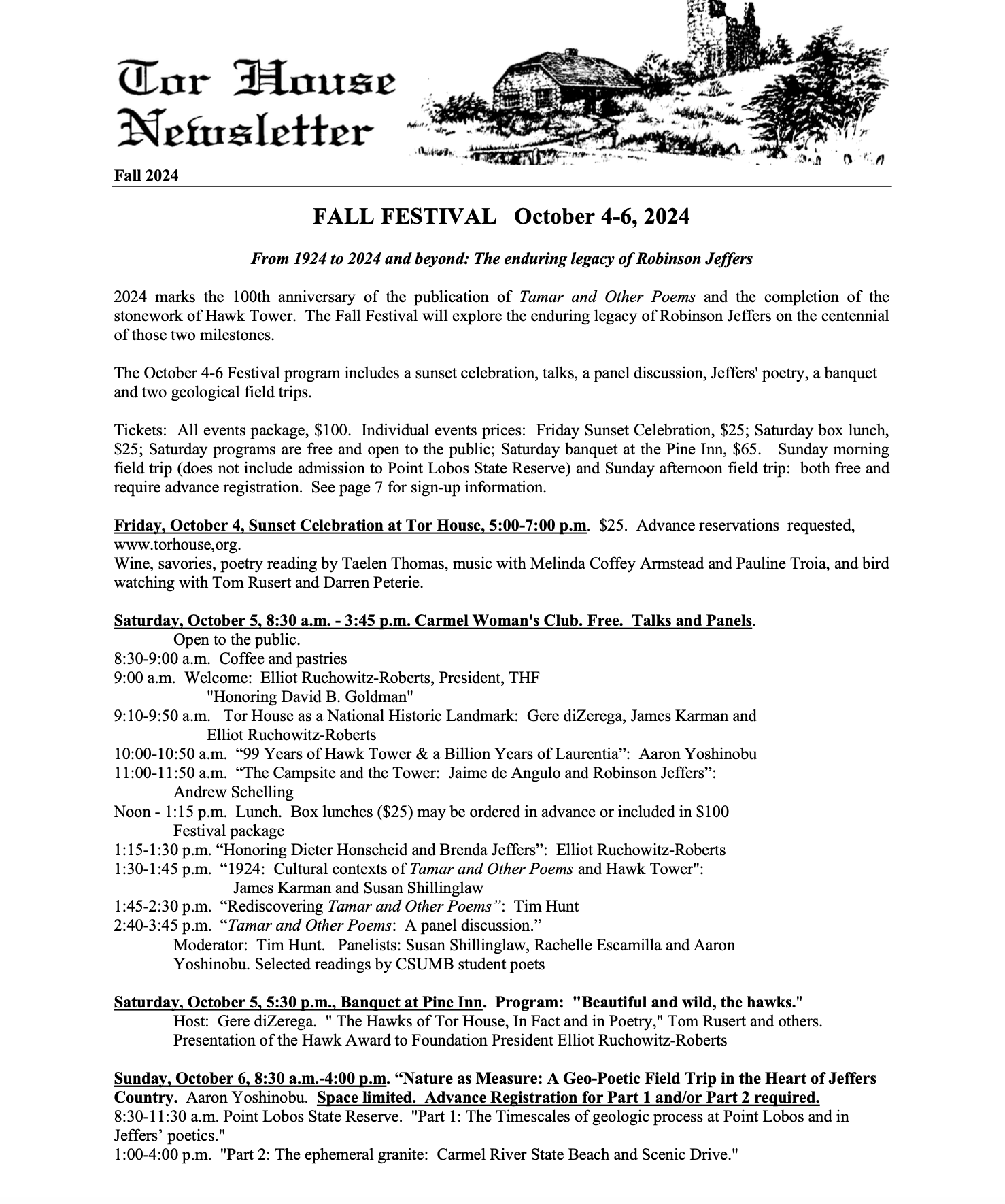 Tor House 2024 Fall Newsletter Sep 4 Written By Click here to view and download the Fall e-newsletter with THE Fall Festival program